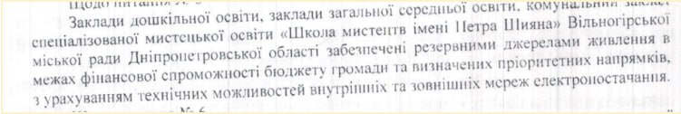 У відповіді також зазначили: Всі заклади дошкільної та загальної середньої освіти, а також школа мистецтв ім. П. Шияна обладнані резервними джерелами живлення у межах можливостей бюджету та технічних мереж.