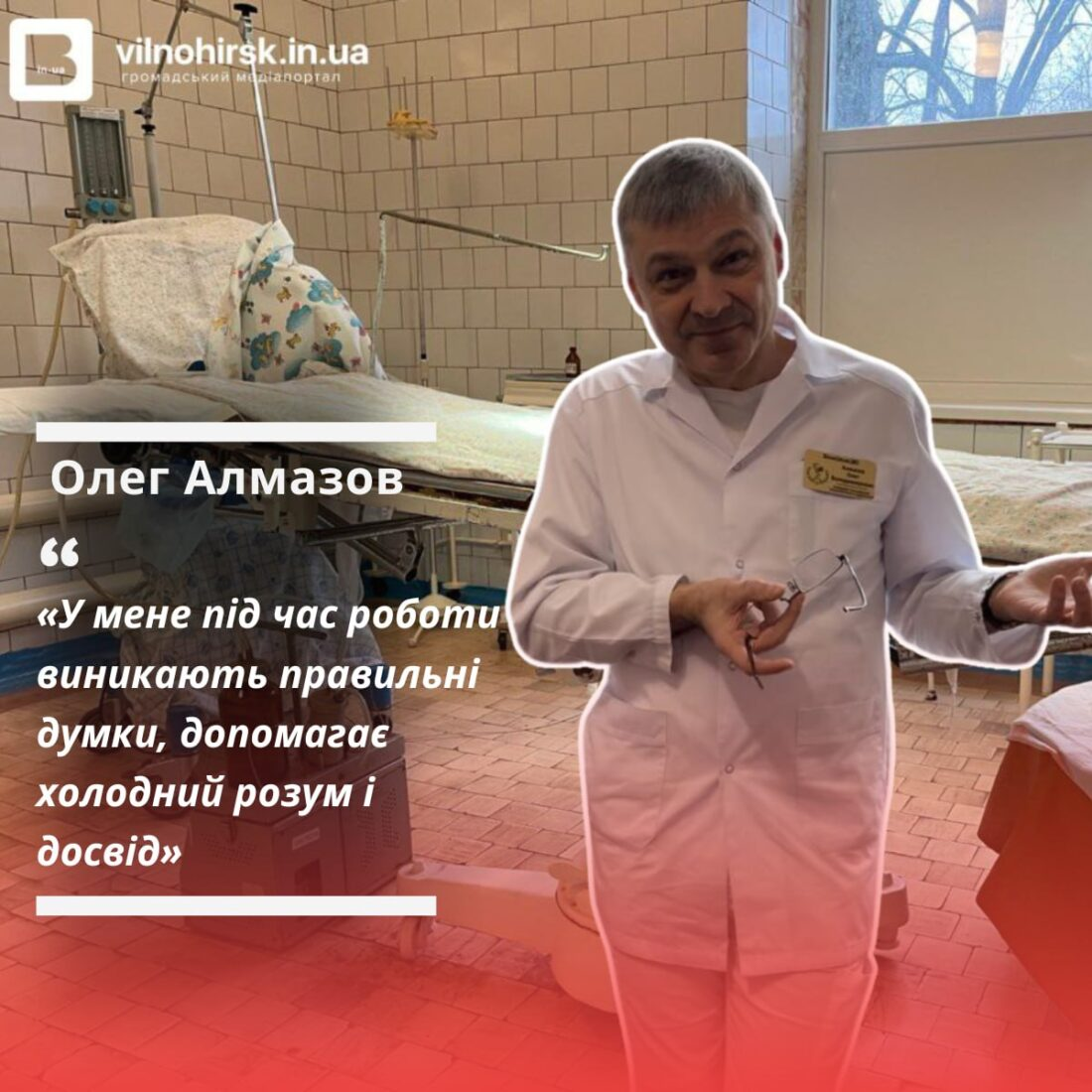 Олег Алмазов, завідувач акушерсько-гінекологічного відділення Вільногірської центральної міської лікарні, також поділився своїми спогадами про людей, які відіграли важливу роль у його житті. Він з вдячністю згадує свого тренера з легкої атлетики Кирюгіна Євгена. Саме він допоміг майбутньому лікарю не лише у спорті, але й у життєвих ситуаціях: коли не було де зупинитися у Сімферополі, тренер дав прихисток, а також навчив роботі в команді та справжній спортивній дисципліні.